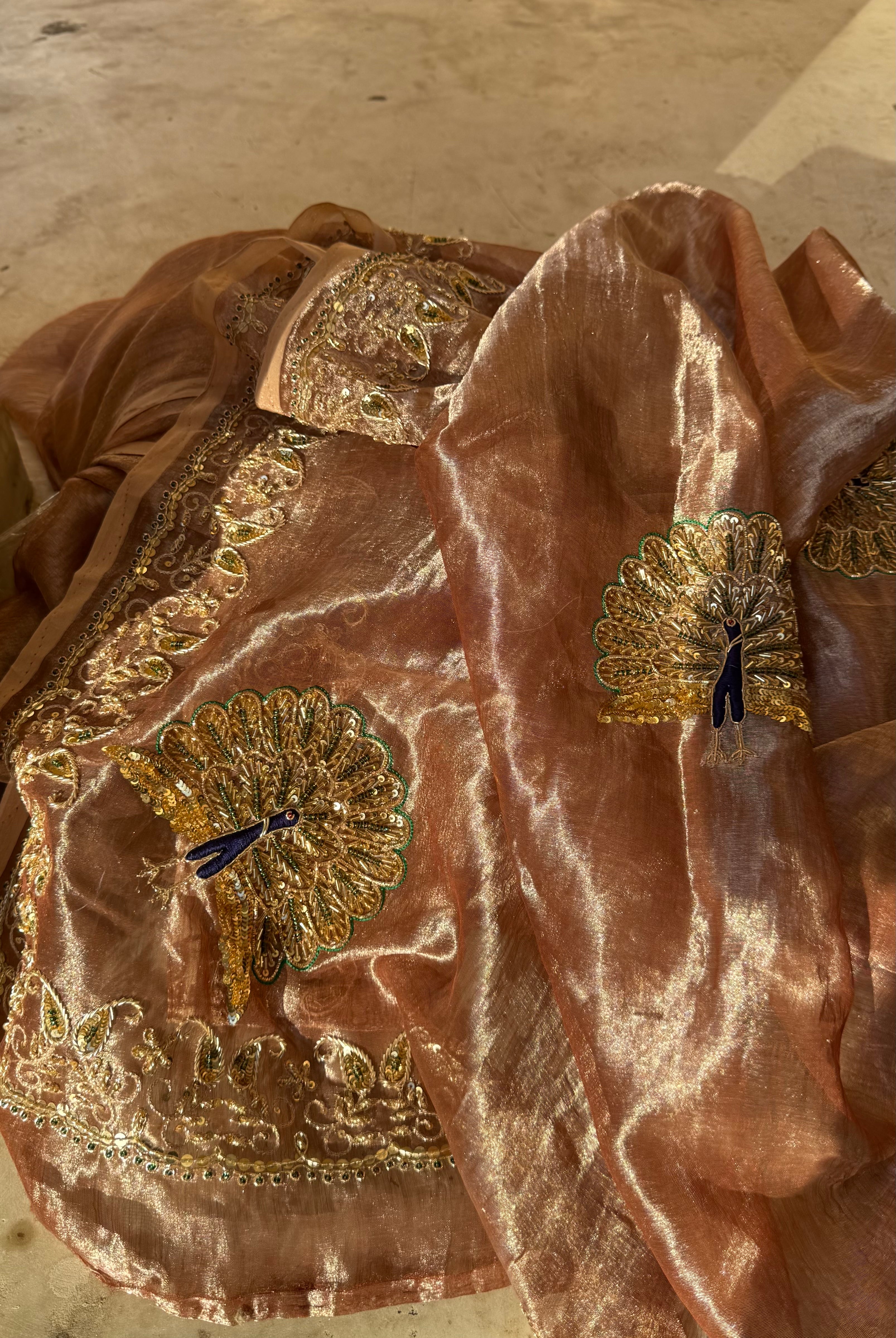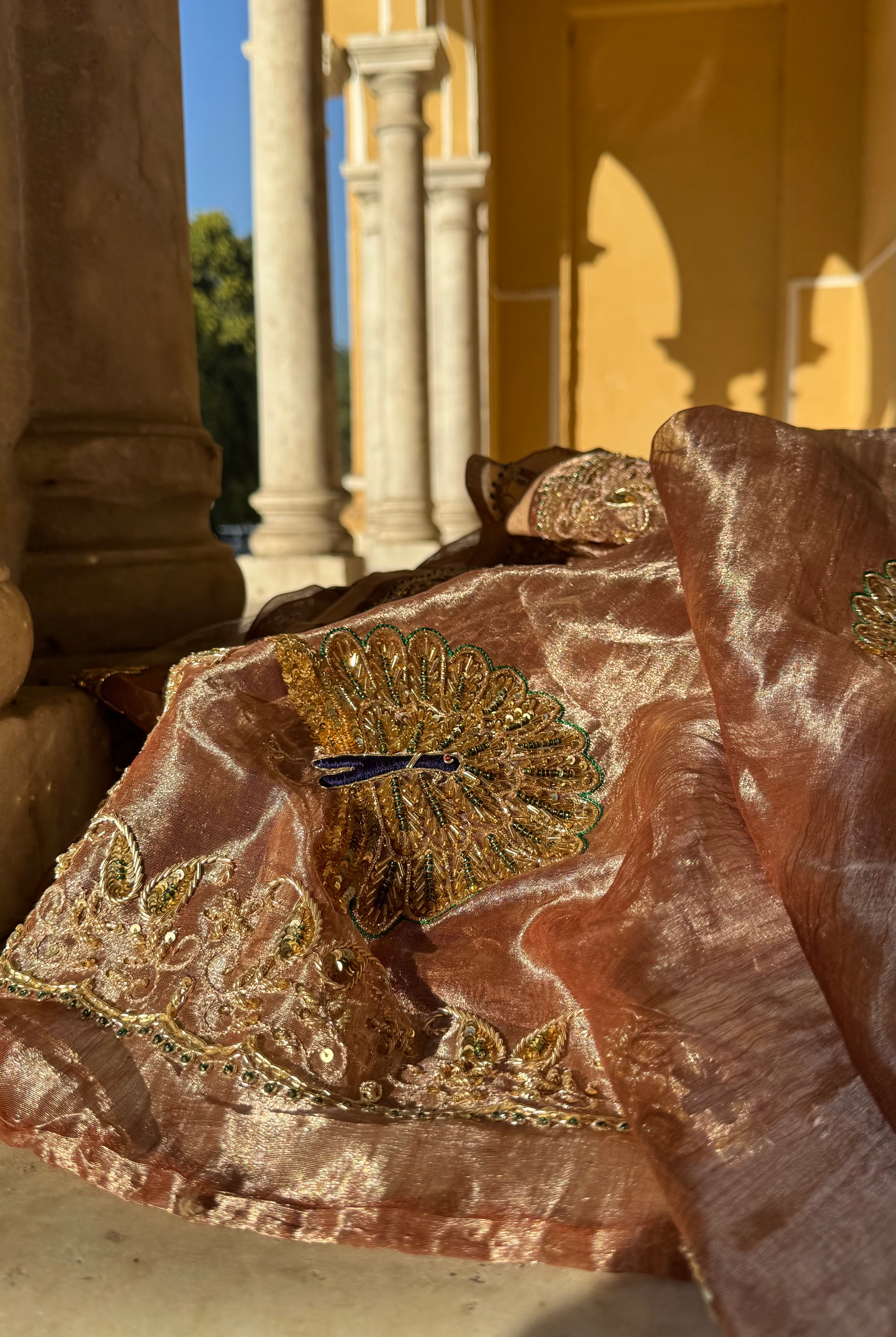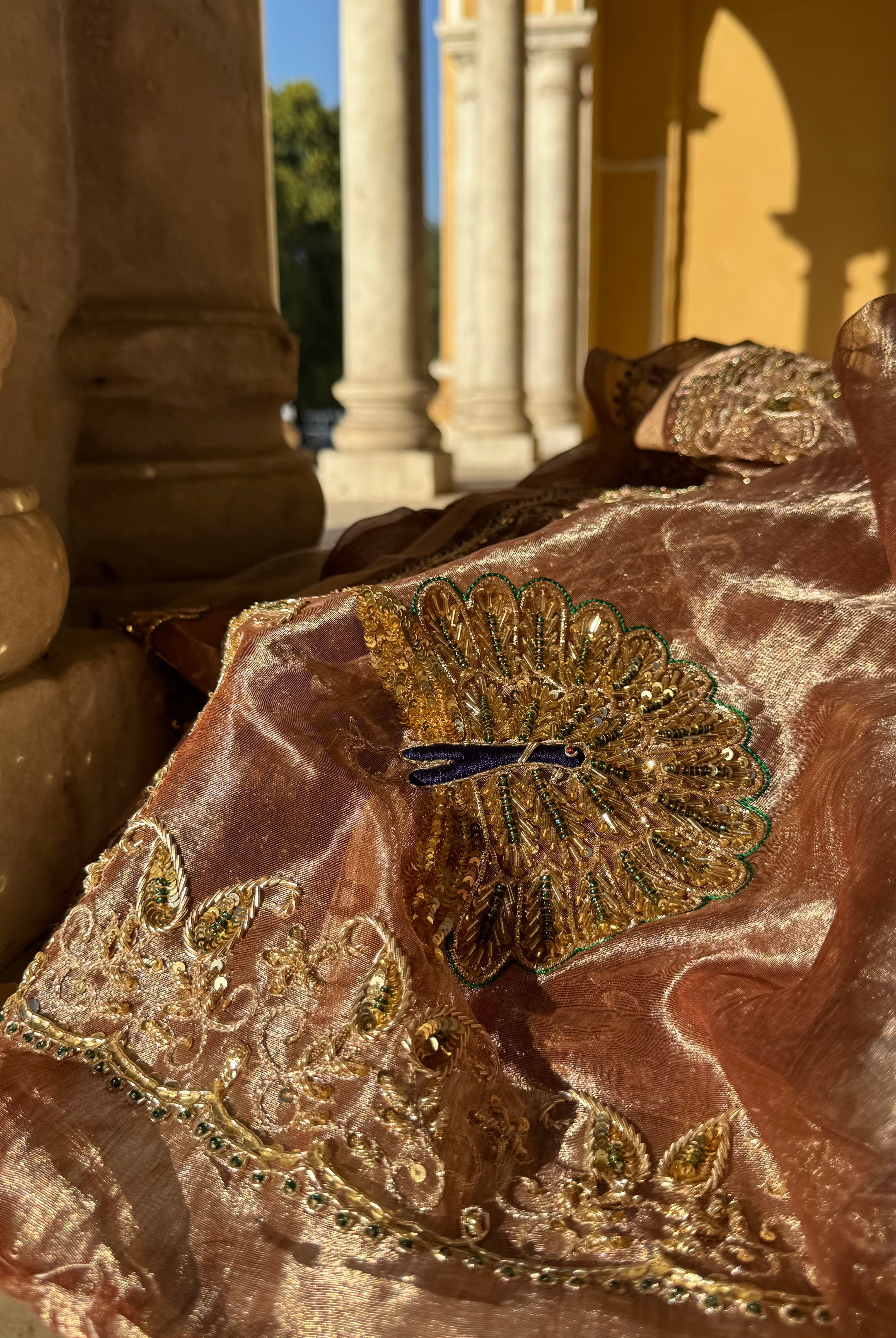 Hi ma'am received the saree, and i have no words, The photos you sent to me do no justice to how beautiful and well hand crafted this saree is. Its a piece of art and will be treasured for a very long time. Thank you for all the time and effort you put into creating this and getting it shipped to me. Can't wait to gift it on wedding function this week. Thankyou once again for this royal saree.