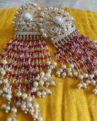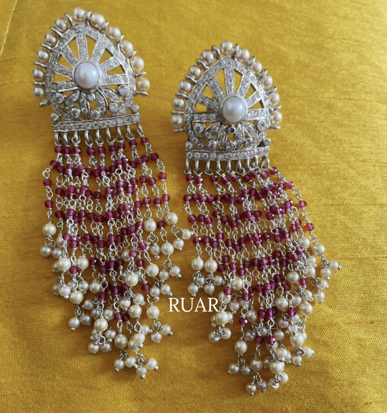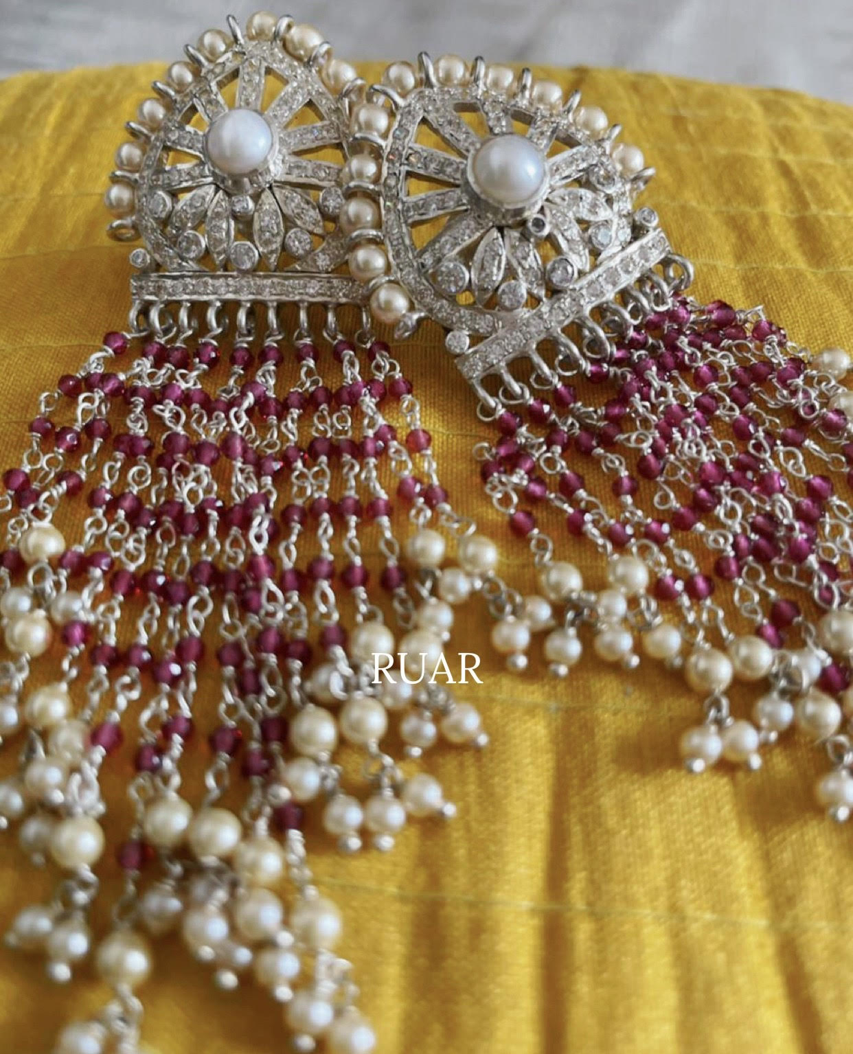 These are in pure silver with rubies and fresh water pearls. These can effortlessly paired with any traditional garment.