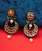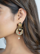 Gold-toned classic drop earrings, gold-plated, has artificial stones and beads