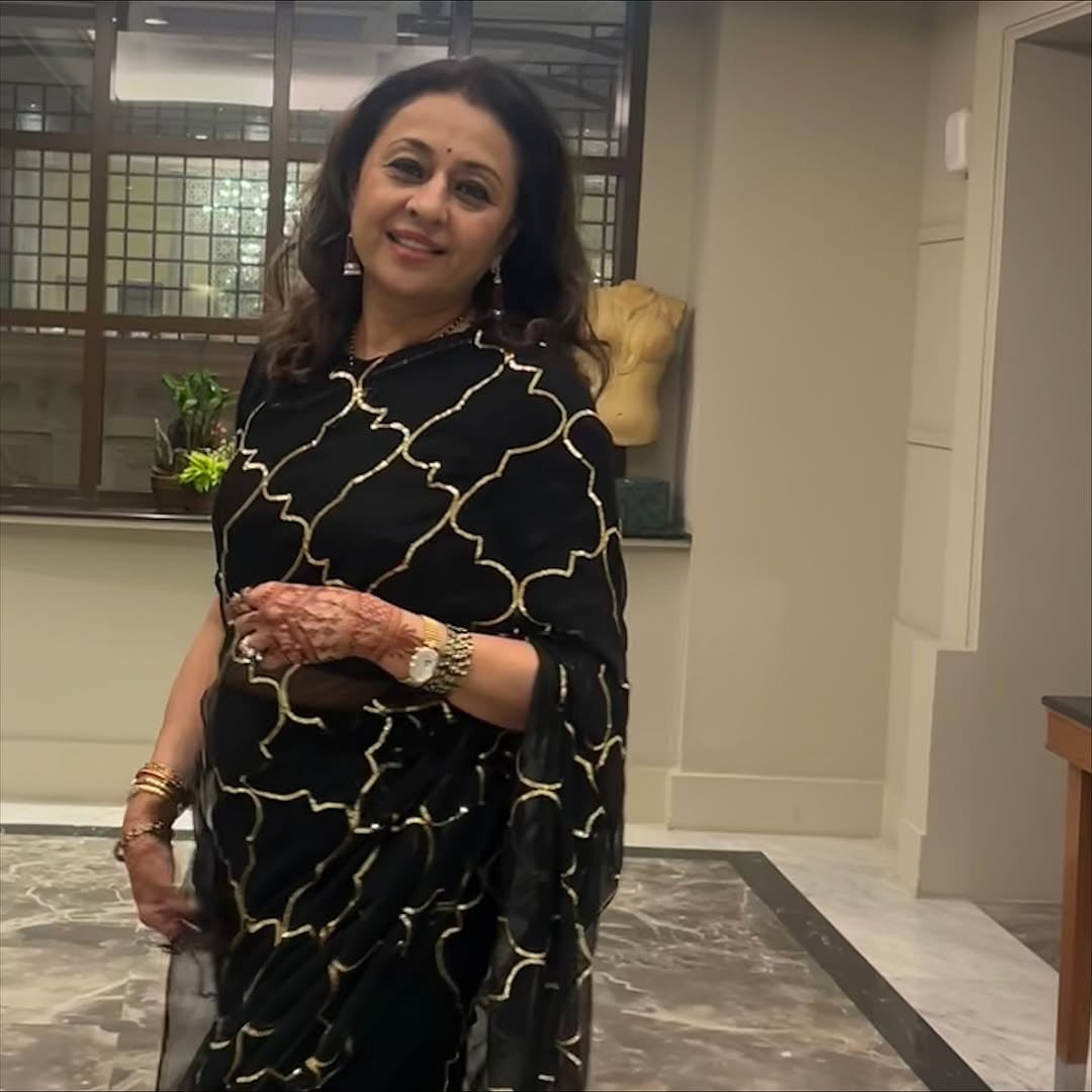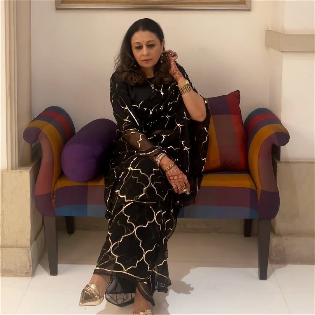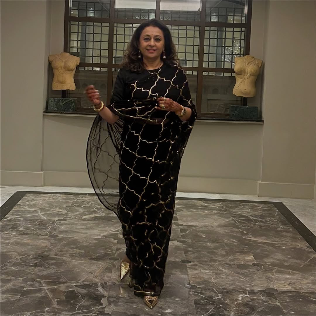One of our best seller sarees for all season weddings. Its a perfect drape in black chiffon laden heavily golden sequins. The saree will be made on order.
