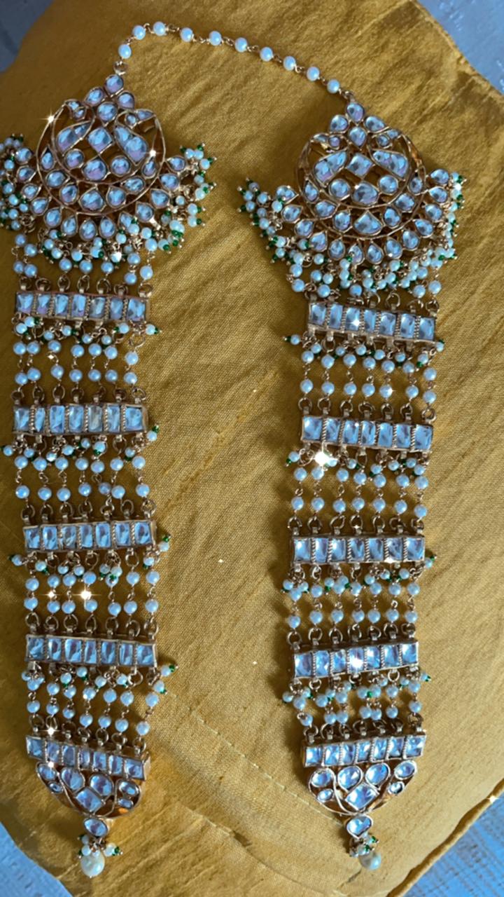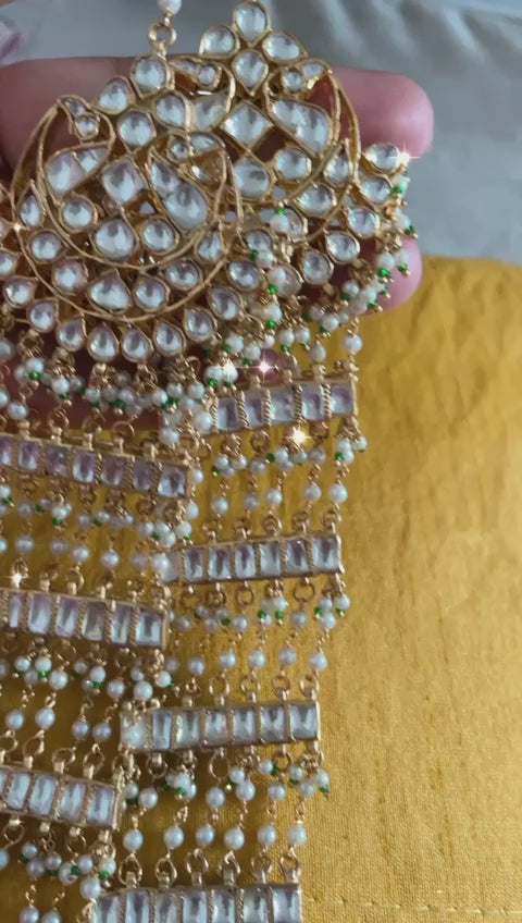Our Bestseller Gold-plated white kundan-studded handcrafted matha patti with pearls beaded details.