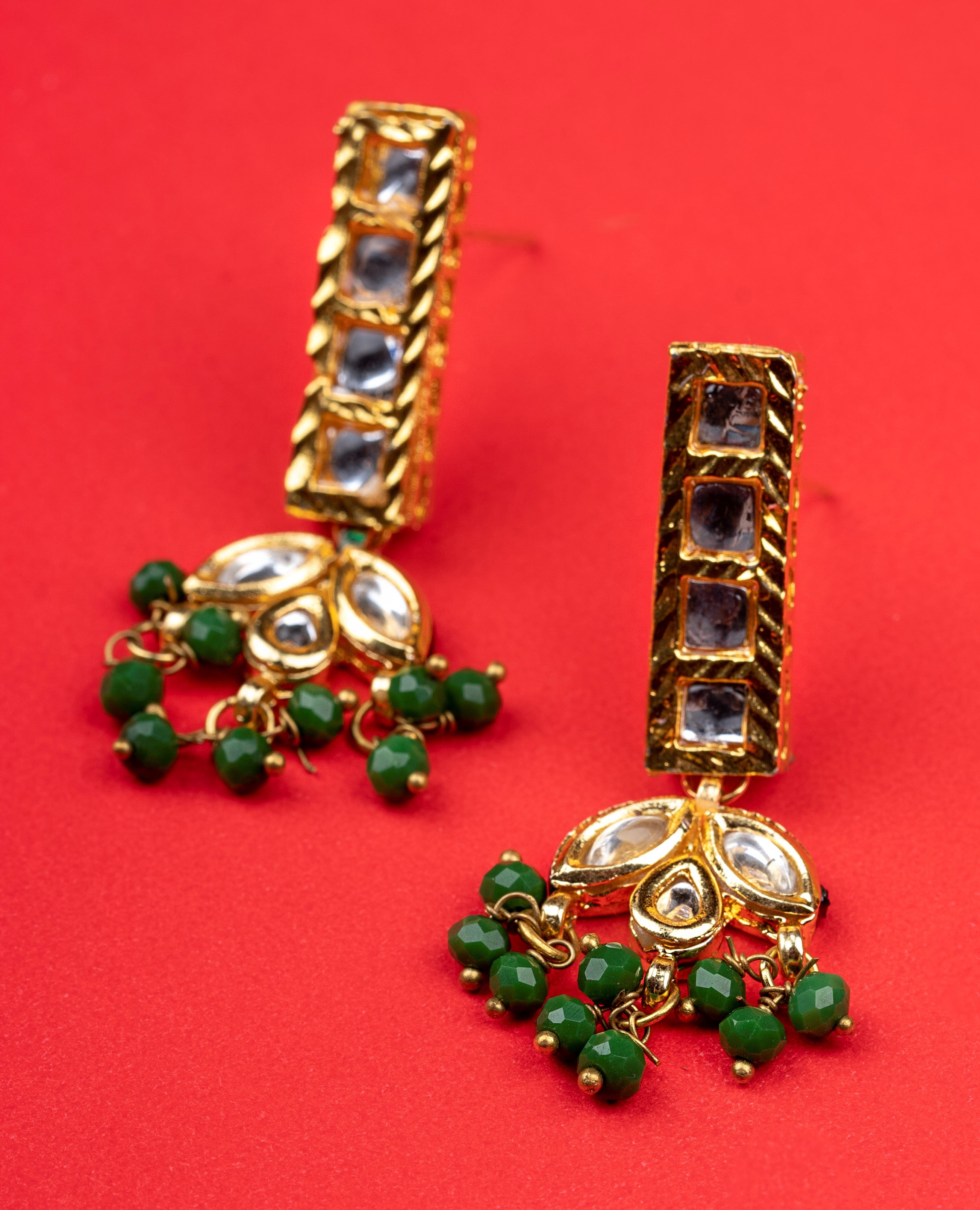 A pair of matching drop earrings, secured with post and back closure.