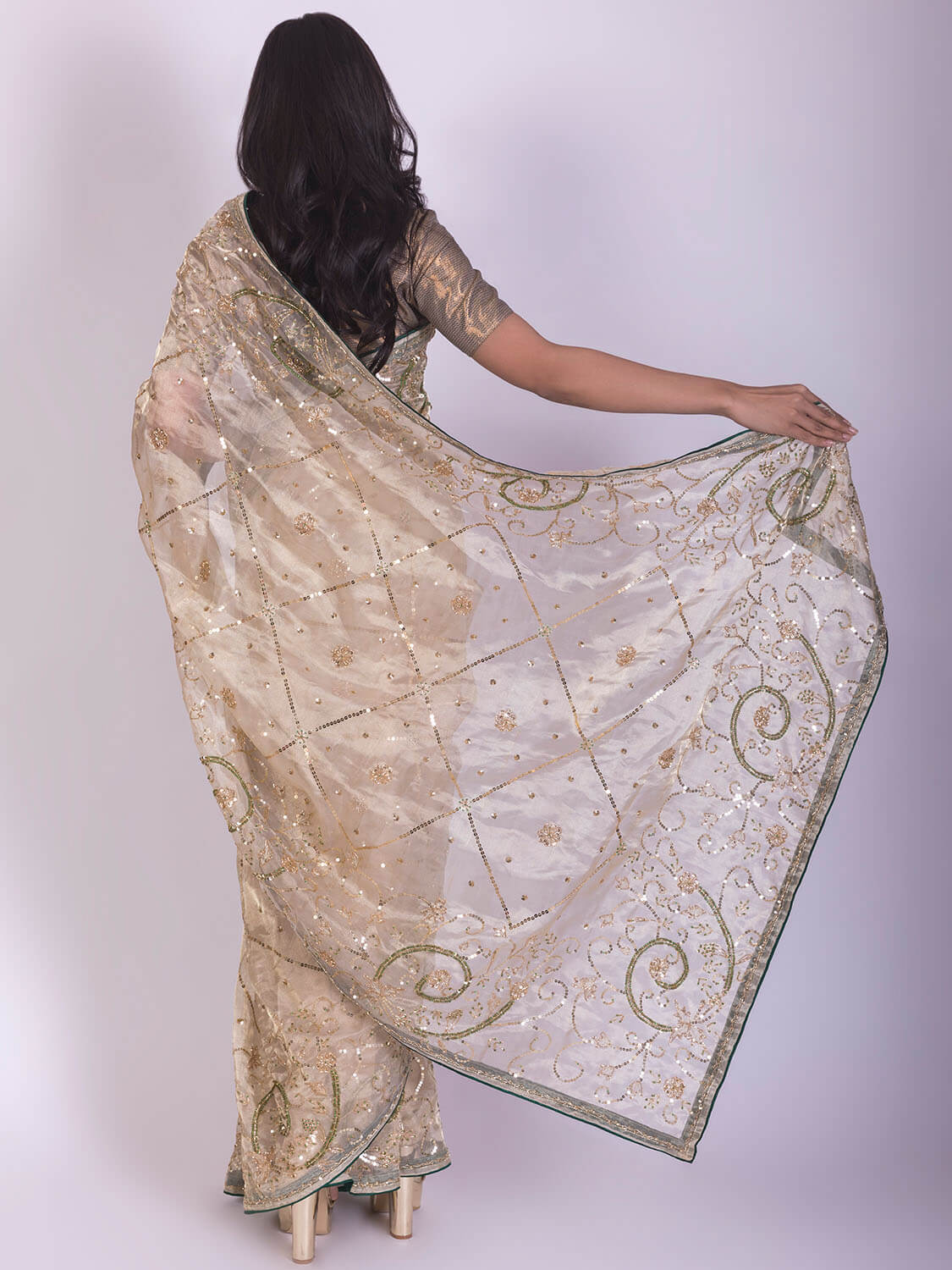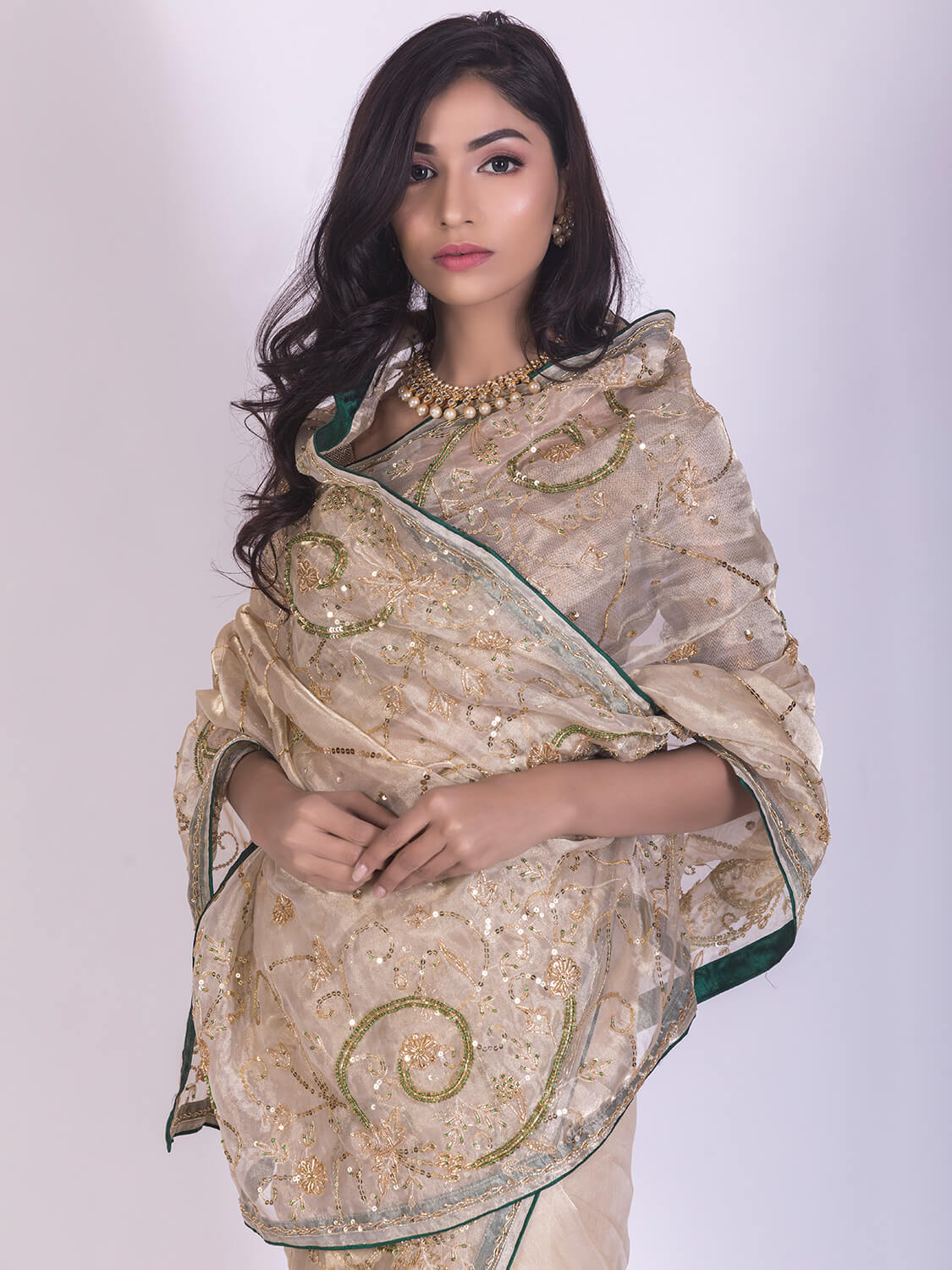 "We are rooted, yet adaptive, we are timeless, yet modern." Sonnets of the soft hues with intricate vintage embroidery on the most delicate tissue saree.